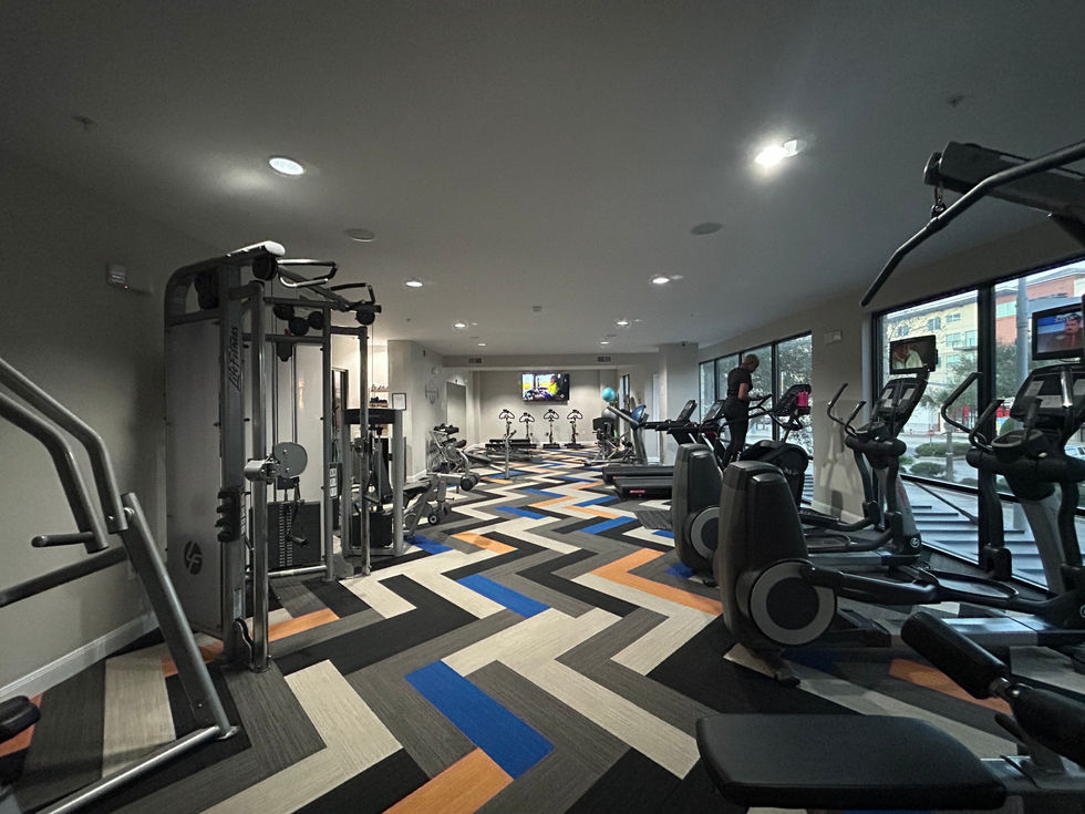 Experience the modern lifestyle with state-of-the-art facilities and vibrant surroundings. From the modern office space with desks and computers to the modern gym with various exercise equipment and patterned flooring, these images capture the essence of contemporary living.
